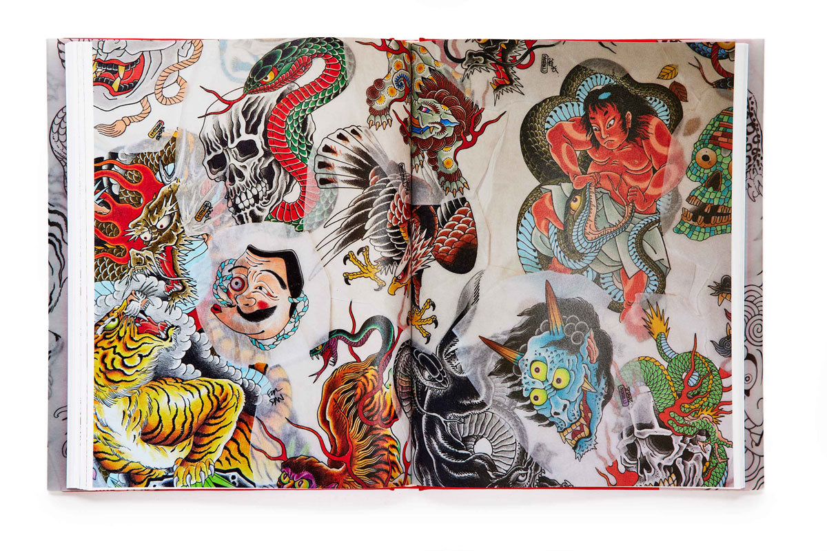Featuring over 100 pages of drawings that span over a decade of work, "Drawings for Tattoos: Chris O’Donnell Vol. I" is a must-have for anyone interested in the art of tattooing. This bespoke book features a vellum dust-jacket with a die cut window to a foil stamped cloth-bound cover. The interior of the book dives into hundreds of drawings for tattoos and the process behind O’Donnell’s work, from sketch to color studies. The pages were designed to be as close to actual size as possible, showcasing the work it takes to bring O’Donnell’s drawings to life. Special layered opacity vellum pages show the outline for tattoos, while flipping the page reveals the drawings created as color studies for the pieces.